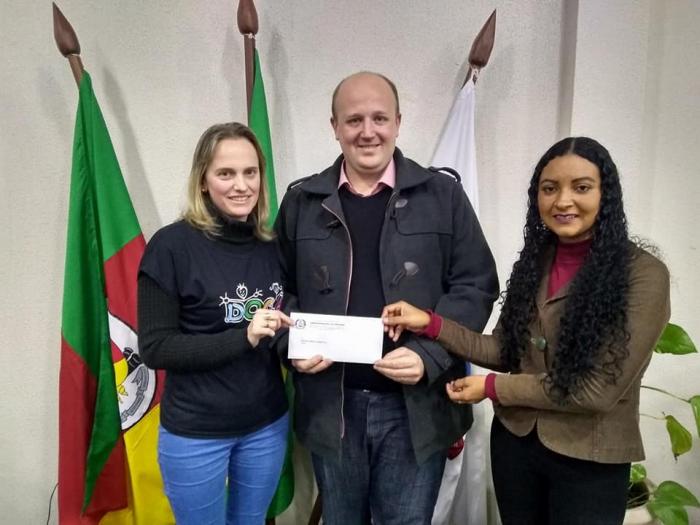 A diretora Andrea Konrath e a presidente do Círculo de Pais e Mestres da EMEF, Angelina Camargo, fizeram as falas de representação do educandário localizado no bairro Saibreira. São 81 alunos atendidos da pré-escola ao quinto ano do Ensino Fundamental.