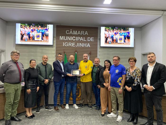Os 60 anos do Lions Clube Igrejinha, completados em 20 de setembro, foram celebrados em Sessão Solene realizada pela Câmara de Vereadores na última terça-feira (23). A homenagem destacou seis décadas de serviços prestados à comunidade e a contribuição do clube em diferentes áreas do município. A proposição foi apresentada pelos vereadores Patrícia Wallauer (PL), Eliton Freitag (MDB), Maxwel de Matos (PSB), Neidi Ione Roos Zeni (PP) e Neimar Parreira (PP).