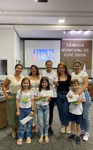 Na Sessão Ordinária da Câmara de Vereadores de Igrejinha, realizada no dia 17 de março, a Vereadora Neidi Zeni celebrou a conquista de Igrejinha, que mais uma vez foi reconhecida nacionalmente com o selo "Ouro em Alfabetização". Através de um protocolo de sua autoria, a Professora Alfabetizadora Leocádia Frantz e os alunos Lívia Rafaeli Dutra, Bernardo Moller Stanguerlin e Maria Ísis Michaelsen, da Escola João Darcy Rheinheimer, estiveram na Casa Legislativa para receber um Voto de Congratulações.